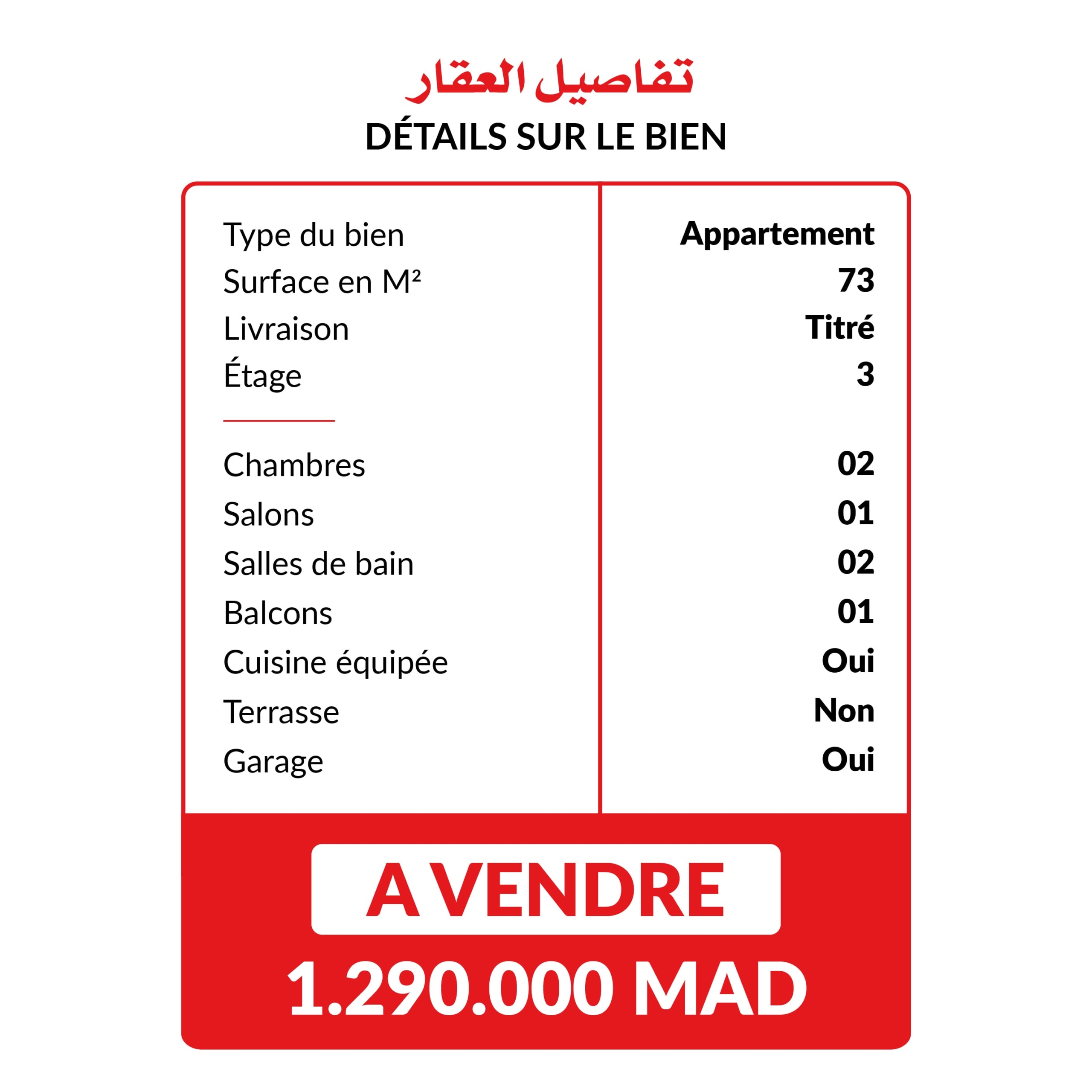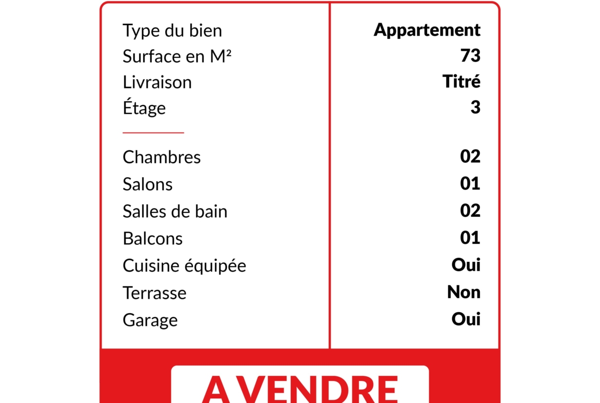 Une place de parking est disponible au prix de 3000 dhs/an.