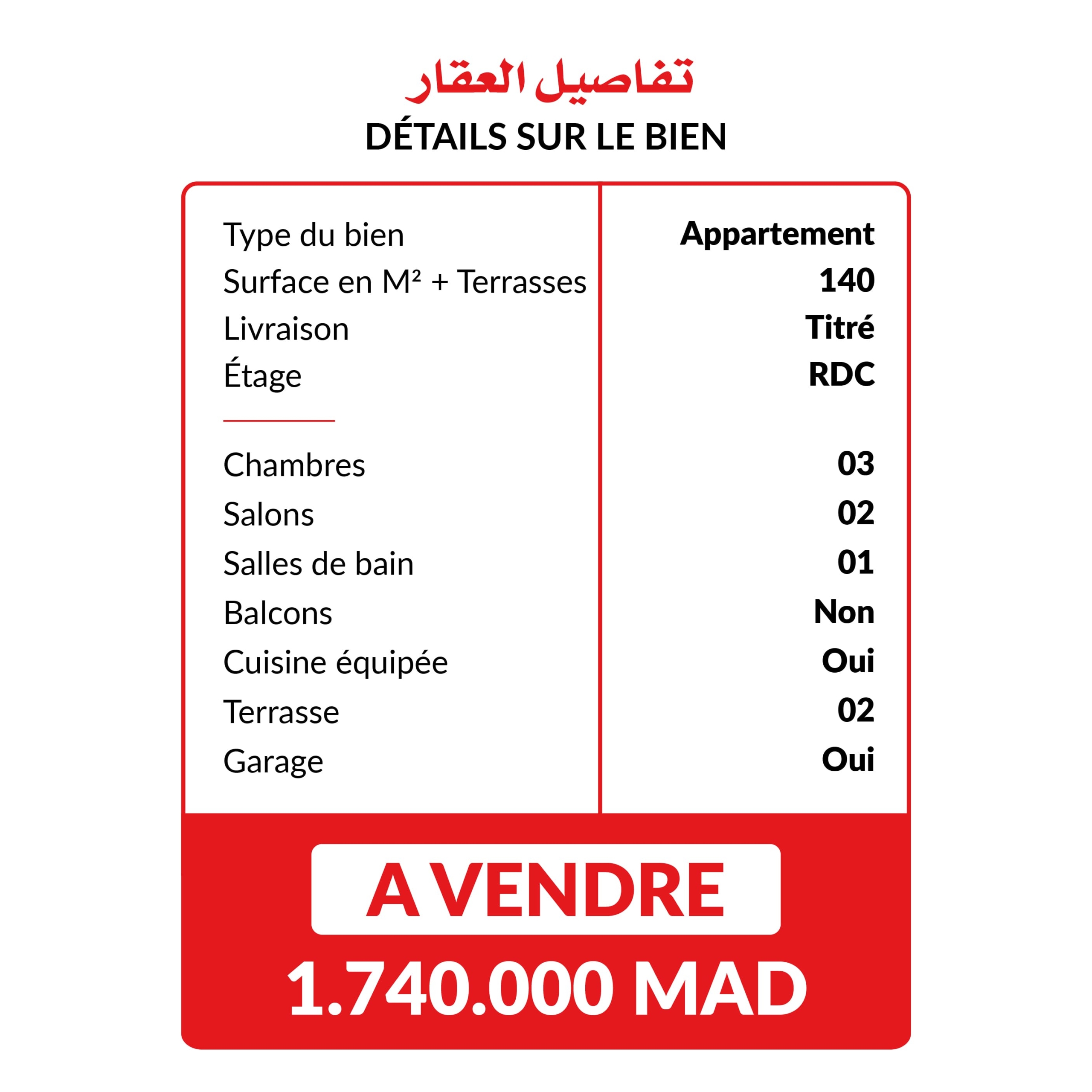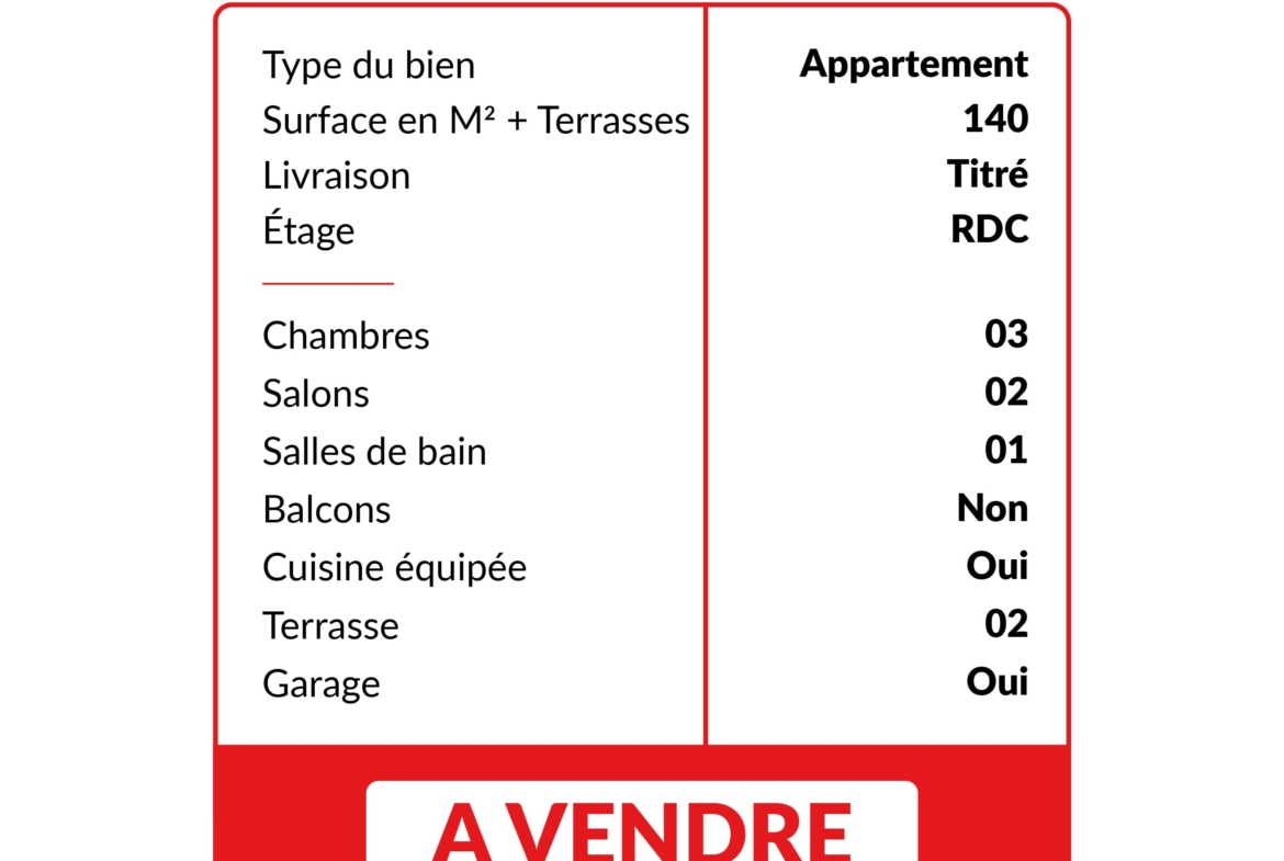 Appartement de 140 m² situé au RDC de l’immeuble, avec 2 grandes terrasses.