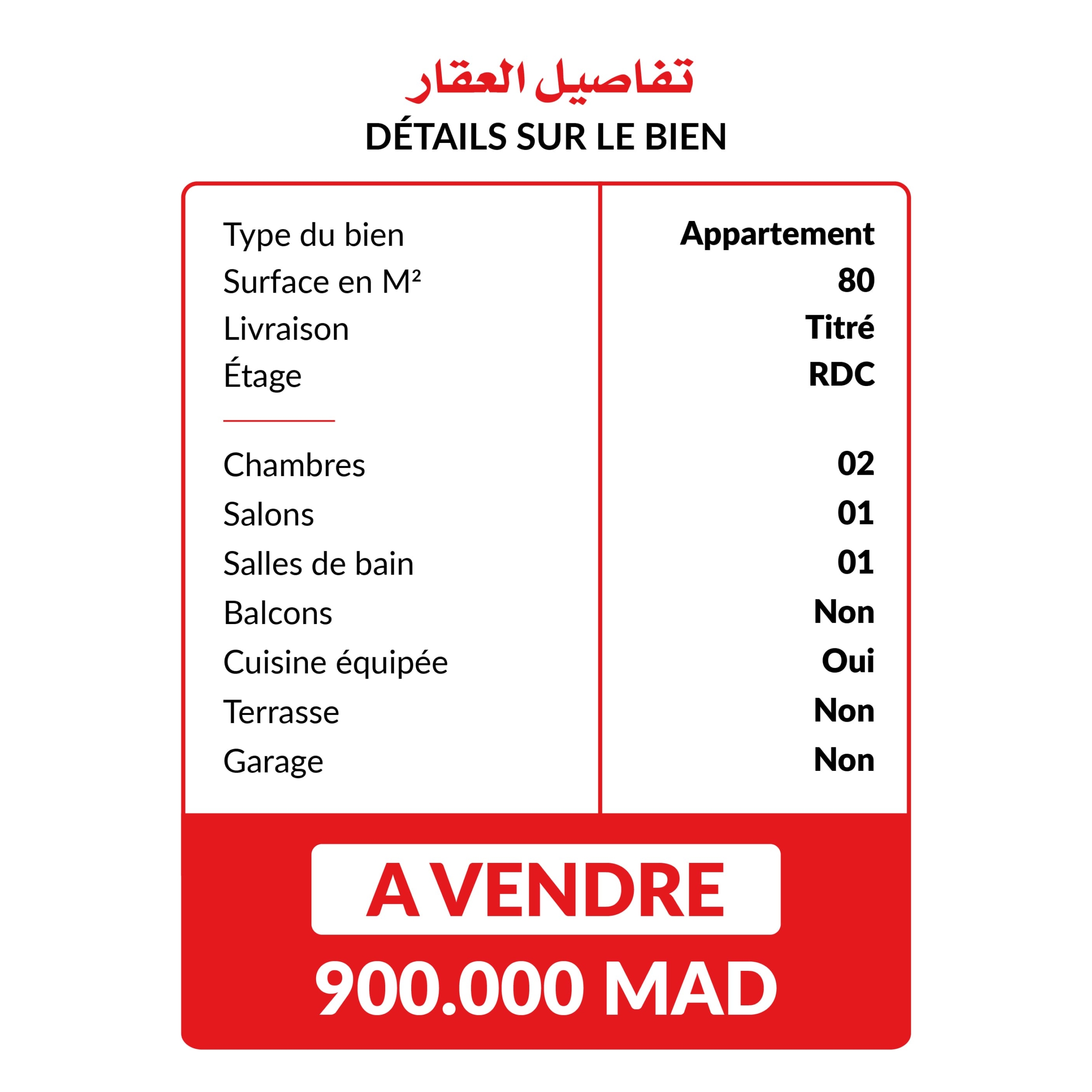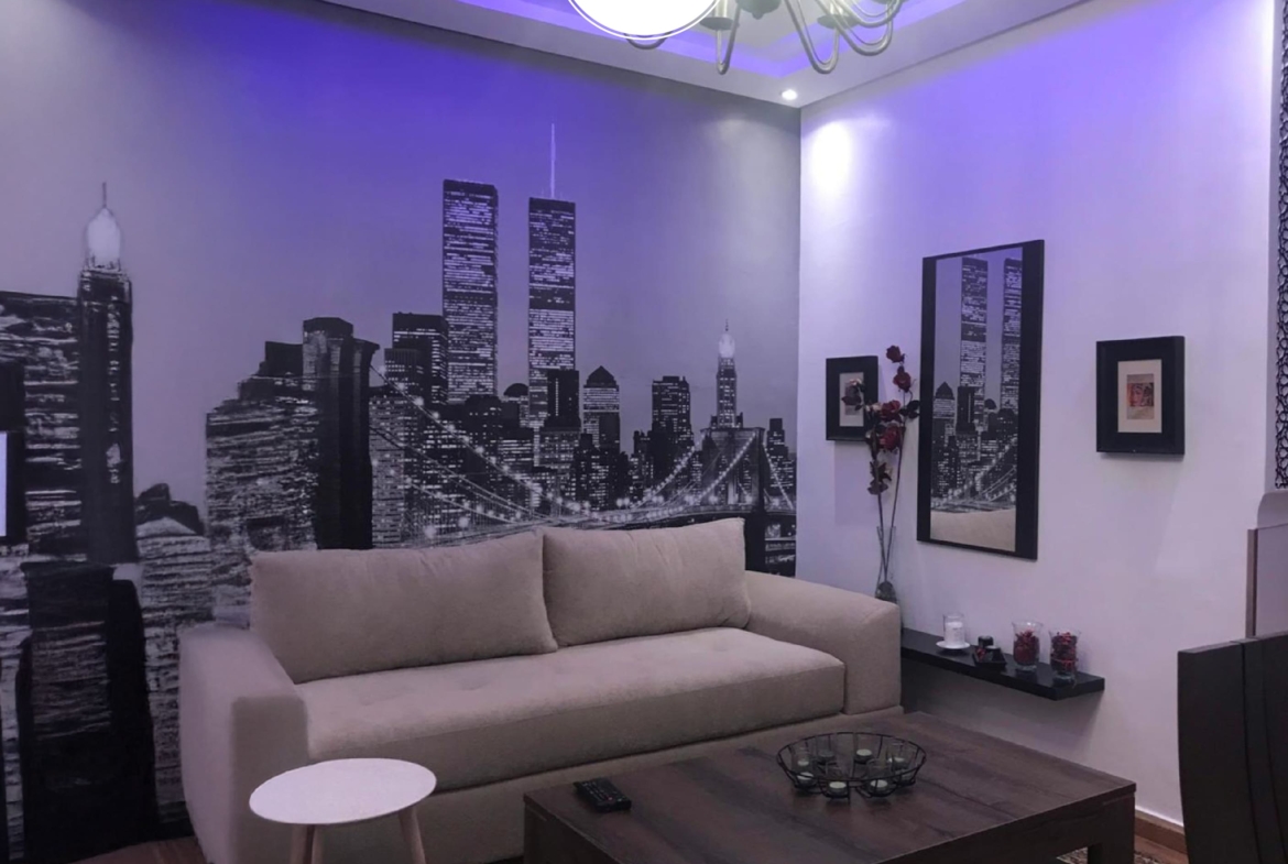 Appartement meublé de 80 m² situé au rez-de chaussée d’une résidence fermée et sécurisée avec espace vert, il se compose de 2 chambres, salle de bain, salon, une cuisine équipée et un W.C. Il ne dispose pas de place de parking.