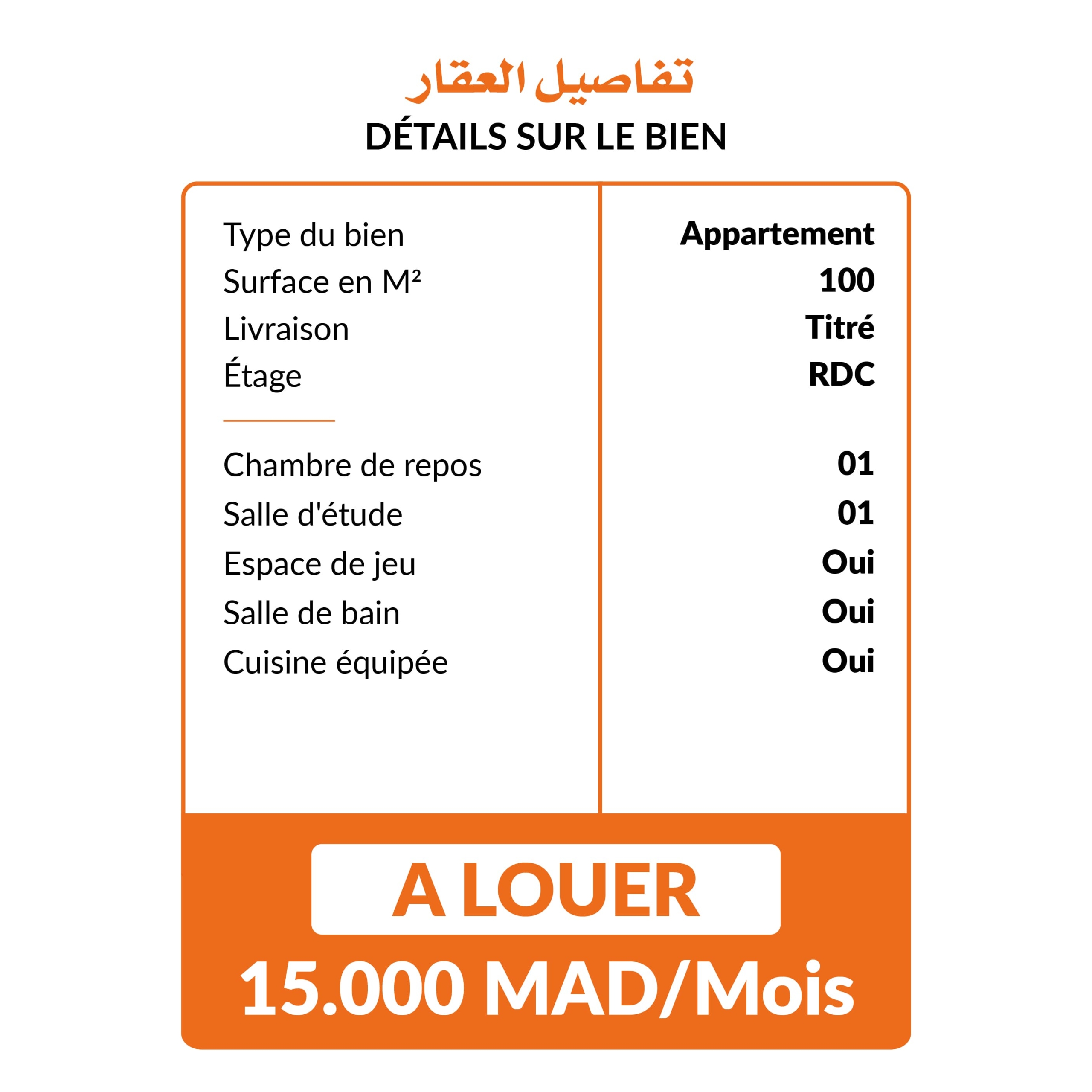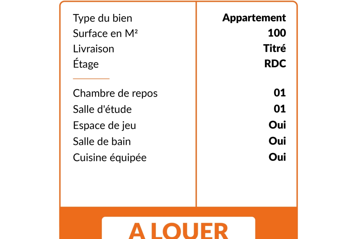 Crèche préscolaire à louer, d’une superficie de 100 m², située au rez-de-chaussée.