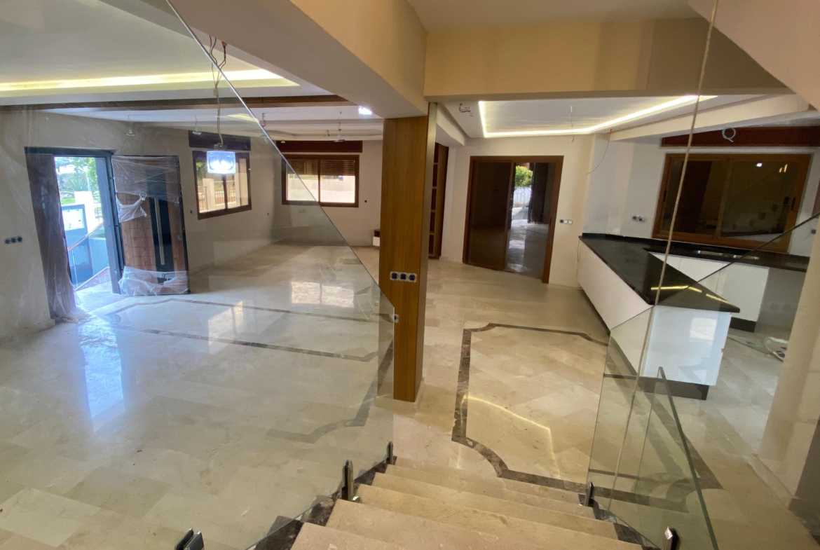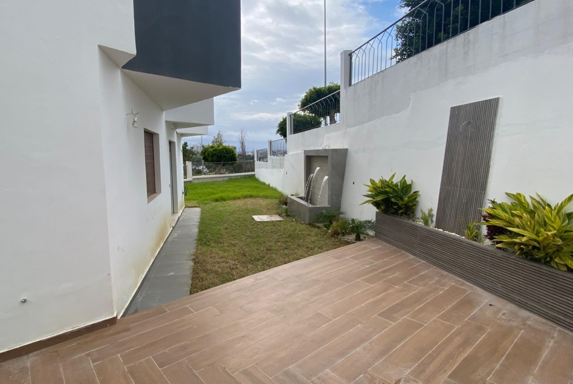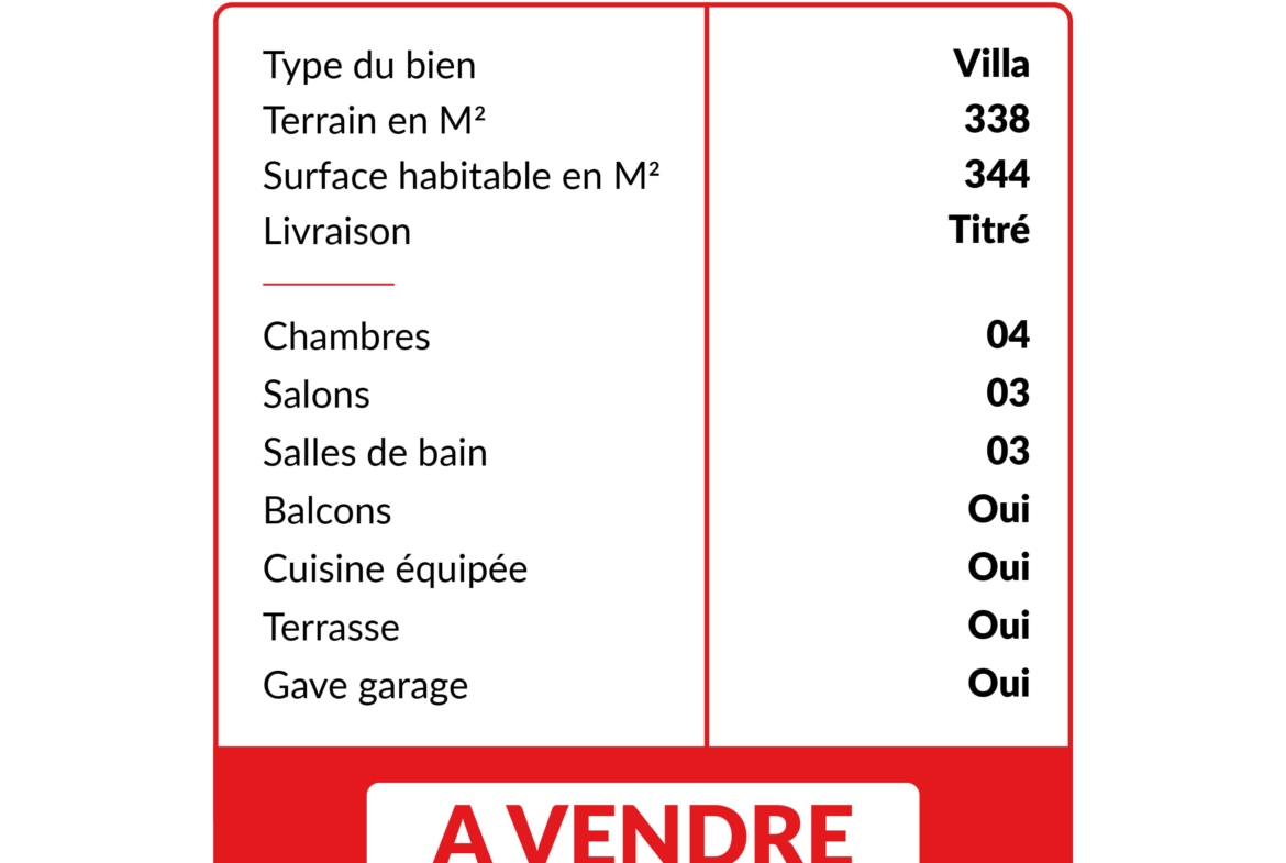Elle dispose de 3 façades avec jardin, 4 chambres dont une suite avec dressing et balcon spacieux, 3 salles de bain, une grande cuisine américaine avec séjour et 3 salons spacieux.
