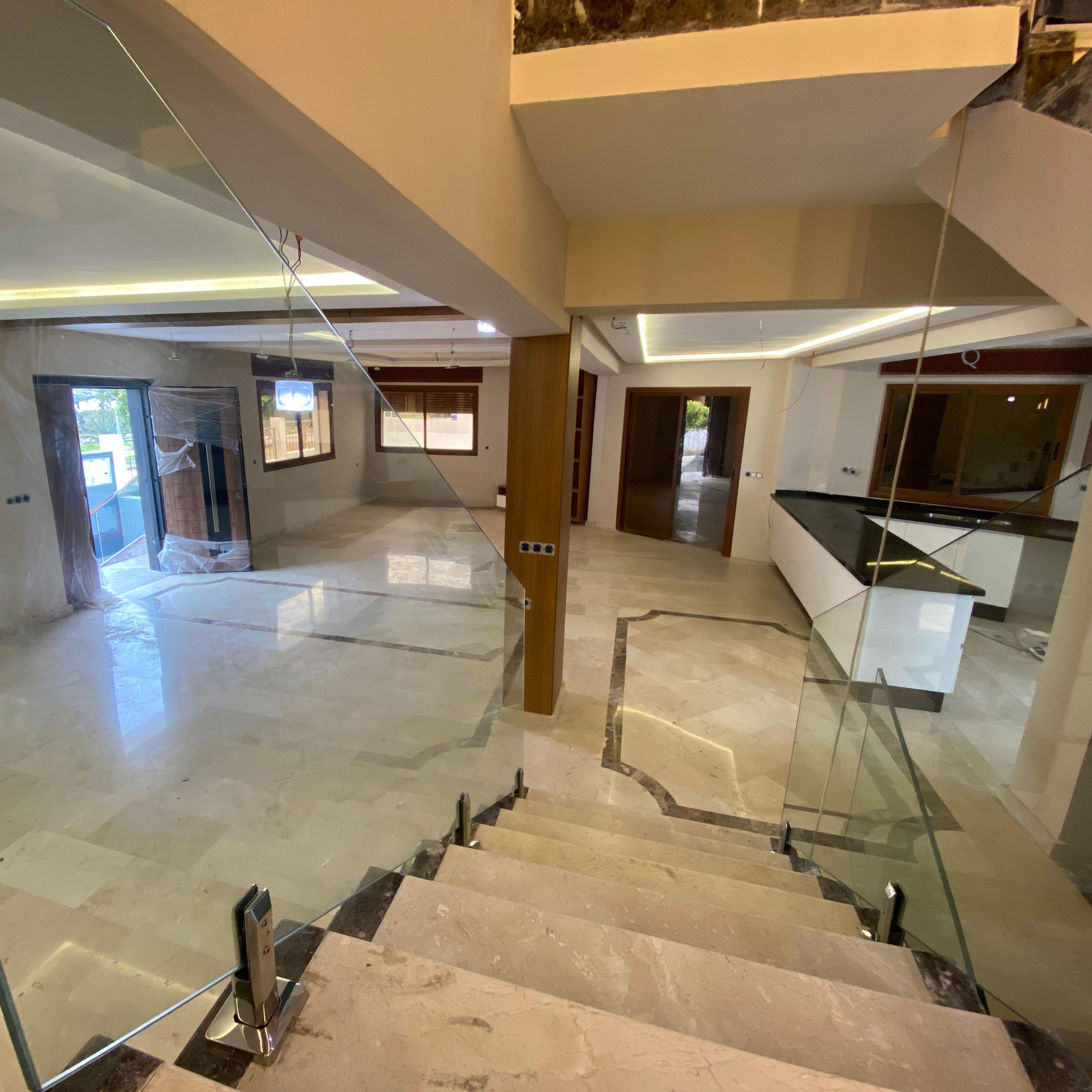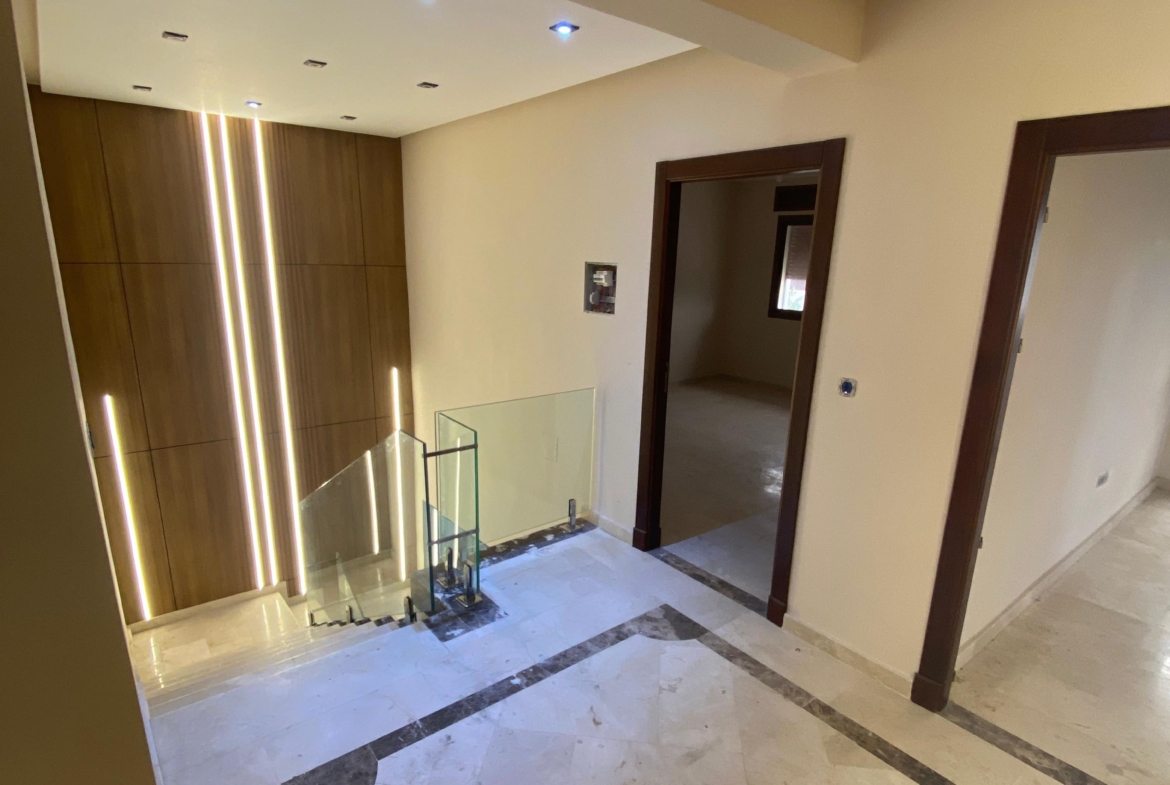 La villa est semi finie et dispose d’un garage souterrain pouvant accueillir cinq voitures à la fois.