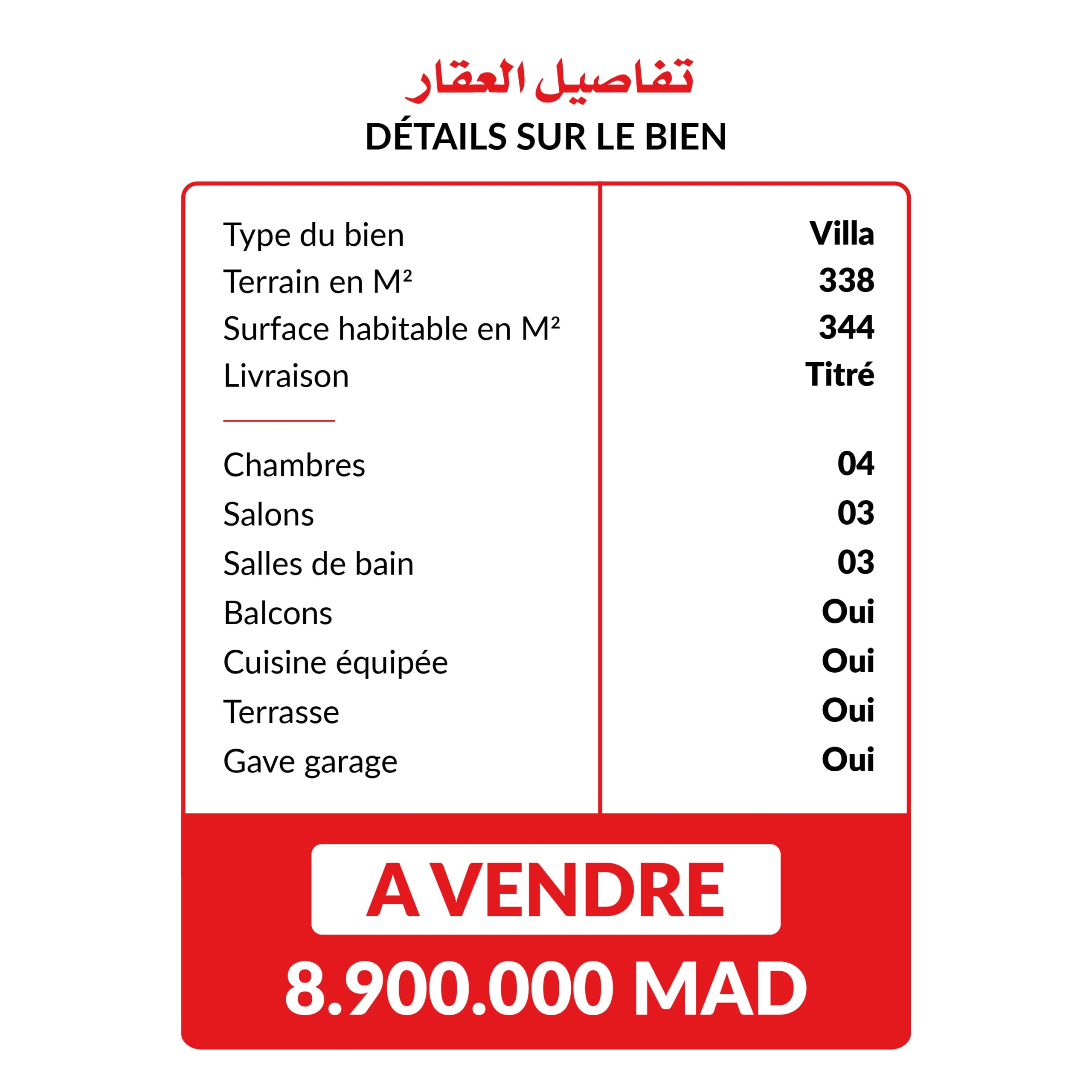 Une magnifique Villa de 344m² de surface habitable sur un terrain de 338m² avec une vue panoramique imprenable sur Tanger.